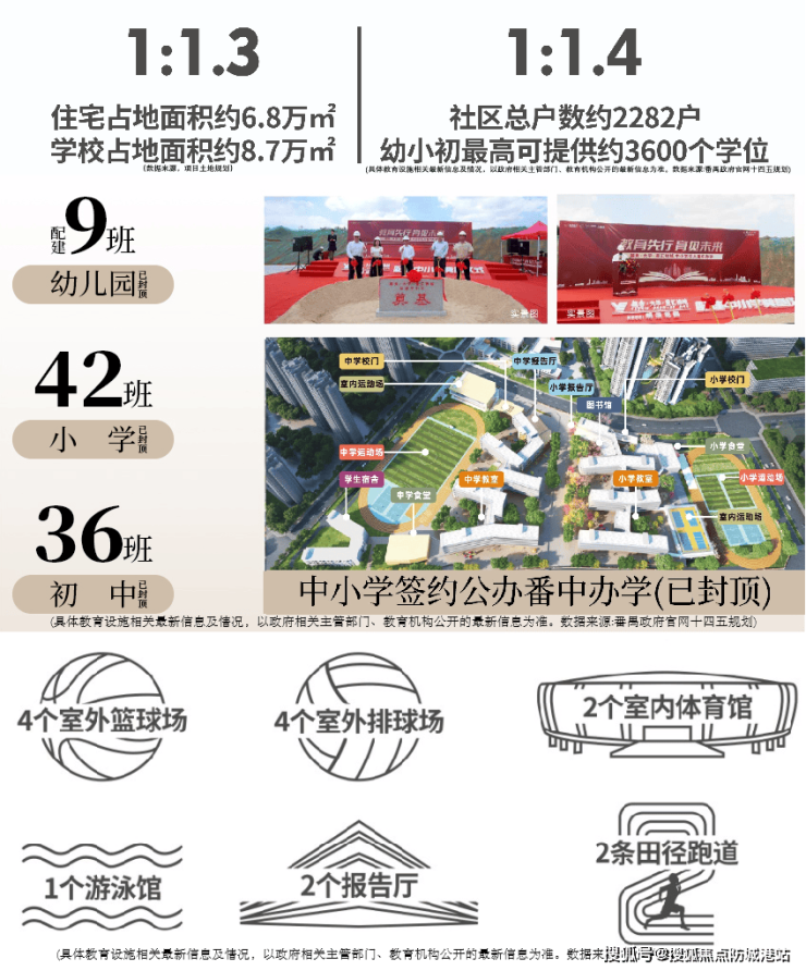 项目最大的优势就是楼下12年全龄教育,均是开发商配建的。有9班幼儿园,42班小学36班初中,中小学引入公办番禺中学办学。而且,也计划在今年9月份开学。(具体以教育局公布为主)