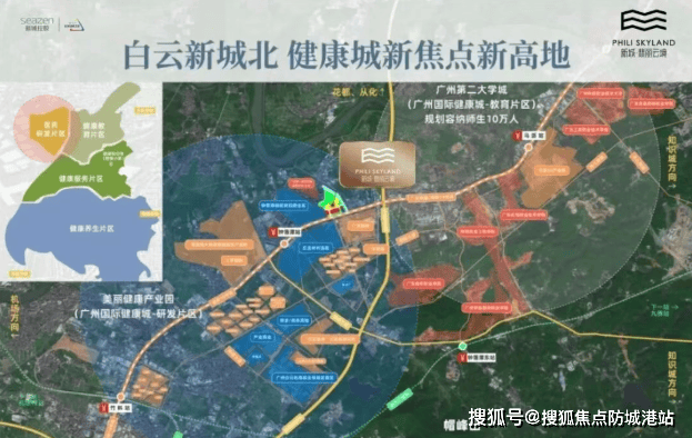 新城翡丽云境所在的钟落潭镇属于千亿级美丽健康城与广州第二大学城的核心地带。区域内已经吸引了包括何济公、明兴制药、广药集团等在内的29家知名健康产业企业入驻,形成了一个集医药研制、职业教育、健康服务和养生四大功能于一体的综合性基地。此外,该地区还汇聚了13所高等教育院校,为湾区培养了大量的科技人才。