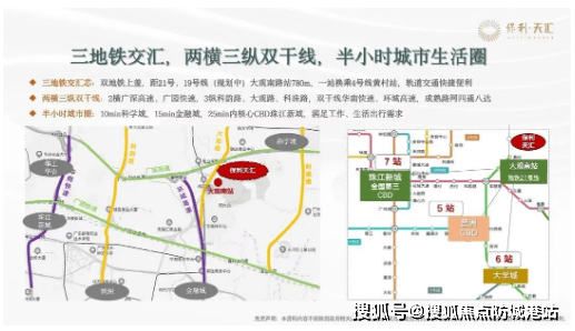 保利天汇地理位置优越,位于天河智慧城的核心区域,距离21号线大观南路站约1.2公里,步行大约需要15分钟。自驾出行也非常方便,周边有广深高速、广园快线、大观路等主要道路,并且正在建设中的机场第二高速将进一步提升出行便捷性。