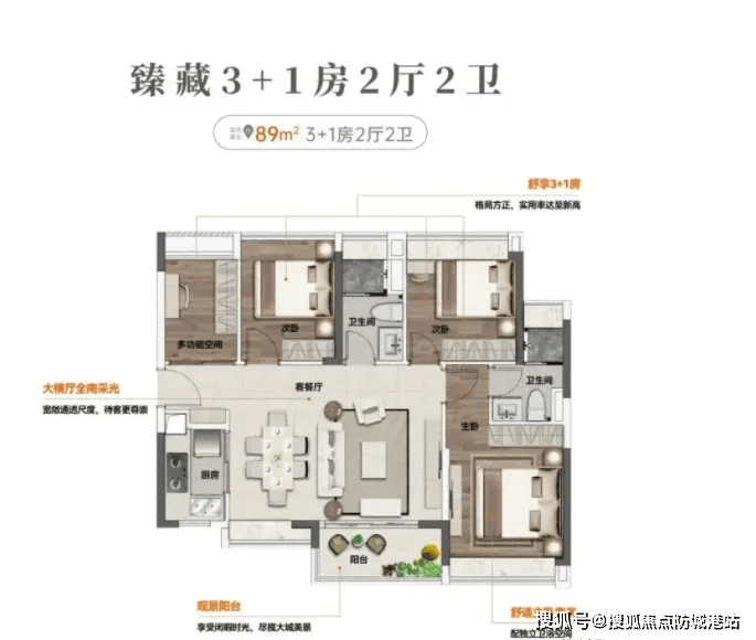 4. 建面约89㎡四房两卫:多成员家庭的“私密之选”