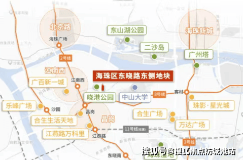 项目邻近地铁8号线和2号线,距离晓港地铁站仅约600米,步行即可到达。周边多条公交线路环绕,自驾出行也十分便利,通过东晓路上桥可快速到达越秀东山,半小时内可达琶洲、珠江新城等重要商圈。