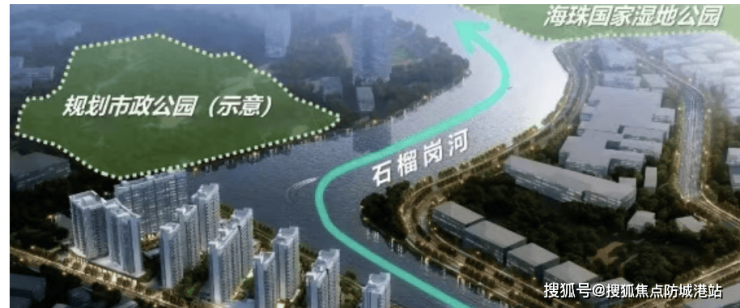 2、海珠顶级生态:紧邻海珠湿地公园、石榴岗河滨水景,3 公里内百余个公园,低密容积率 2.83,小高层居住舒适度极高。