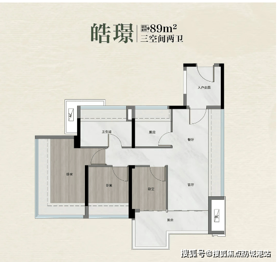比如建面约89/92㎡的三房两卫,这在市面上通常是紧凑型刚需盘的标准配置,但在越秀鸿璟台,得益于新规,它的实际使用空间堪比别人的100㎡。全南向设计,L型大阳台,加上入户花园,让原本局促的空间瞬间变得通透宽敞。这个户型已经售罄,足见其受欢迎程度。
