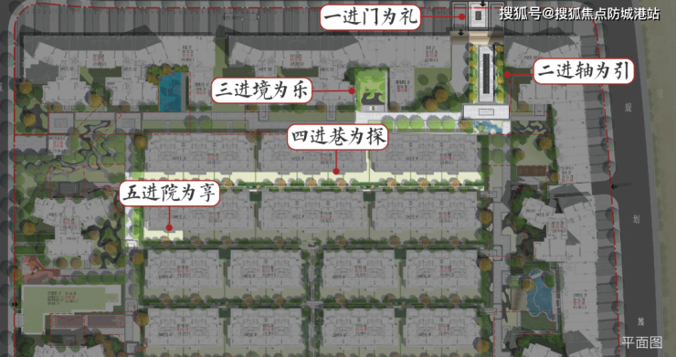 板块唯一在售2.5低容积率墅区,园林结合盛唐礼序,打造五进式布局,通过草坪地被、花卉小灌、大灌、小乔、大乔,通过五个层次的植栽搭配,达到四时更替、四季有景的效果。