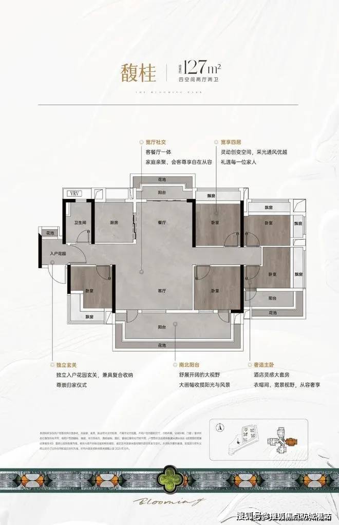 127㎡四居:双阳台设计,客厅与餐厅一体化,空间开阔,总价约736万,适合改善型需求。