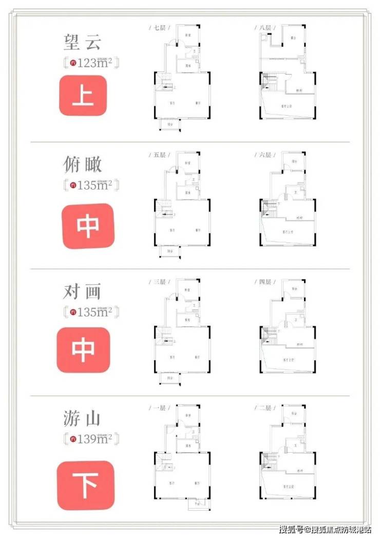 五矿壹云台主推三叠和四叠半山墅产品,户型均具有超高使用率,部分户型使用率超过300%: