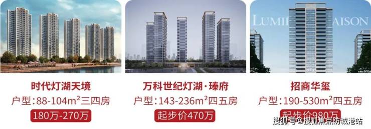 项目在售建面约88-104m²三至四房,临江头排,户户望江。
