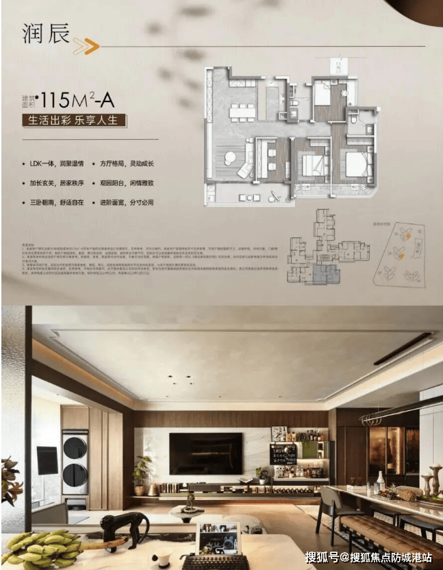 核心卖点三:产品力拉满,全新润心底盘2.0打造庭院式归家意境,创新蝶式楼型+抬高设计,户型得房率超100%,通风采光俱佳,社区配套完善,精装标准高,兼顾实用性与舒适性。