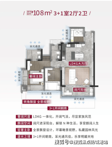100-120㎡四房:格局方正,动静分区清晰,主卧套间配备独立卫浴,预留步入式衣帽间空间;超 6 米景观阳台连接客厅,通风采光俱佳,满足多代同堂需求。