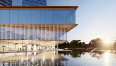 项目总占地面积 70180㎡,总建筑面积 278584㎡,容积率 4.5,车位数 1422 个(车位比约 1:1.24),保障停车需求。分东西两地块开发:东地块规划 2 栋住宅、2 栋公寓、1 栋写字楼及 3 栋人才房,住宅货量约 265 户;西地块为纯住宅社区,含 6 栋商品房,货量约 550 户,居住氛围更纯粹。建筑由冼剑雄团队操刀设计(代表作包括琶洲南、海珠天珺等高端项目),外立面采用约 70% 玻璃幕墙,现代简约风格彰显高端质感,成为智慧城板块的标志性建筑群。