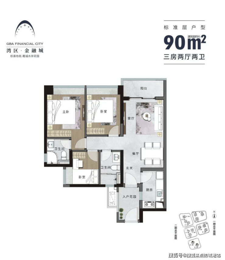 价格层面,相比 2021-2022 年高峰期,横沥岛新房价格已有明显回调,经南沙区住建局官方统计,2026 年 1 月横沥岛新房均价为 2.4 万元 /㎡,较高峰期下降 18%,而湾区金融城主力户型均价仅 2.2 万元 /㎡,低于区域均价 8.3%,部分 88㎡四房产品总价下探至 200 万出头,首付低至 20 万起,结合 2026 年广州换房退税政策与项目 97 折优惠,实际购房成本进一步降低。