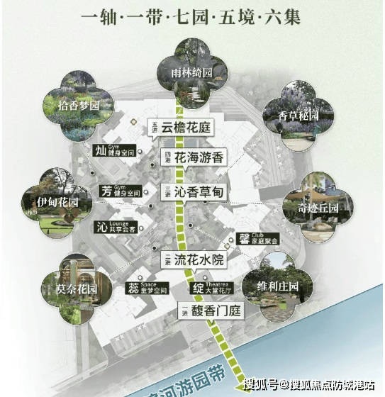 社区配套:六大主题花园、滨河公园、全龄社区配套