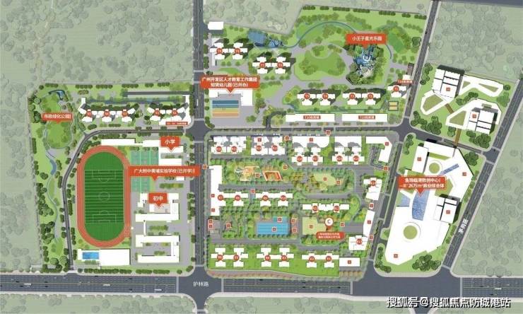 项目内部规划5.3万㎡中央园林,含3600㎡全龄段主题乐园、2700㎡阳光草坪、720米健康环氧跑道;外部1公里内覆盖天河儿童公园、杨桃公园、狮山公园、黄埔公园,形成“内外双生态”居住环境。