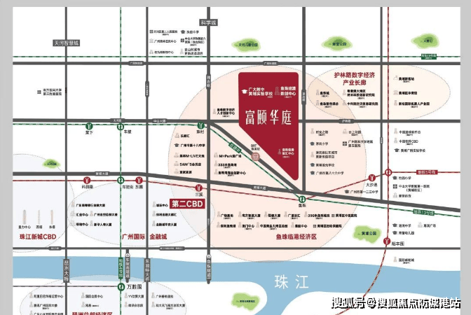 与同区域保利中央公馆、未来方洲等项目持平,但富颐华庭配建广大附中黄埔实验学校(西校区)及26万㎡商业综合体,附加值更高;