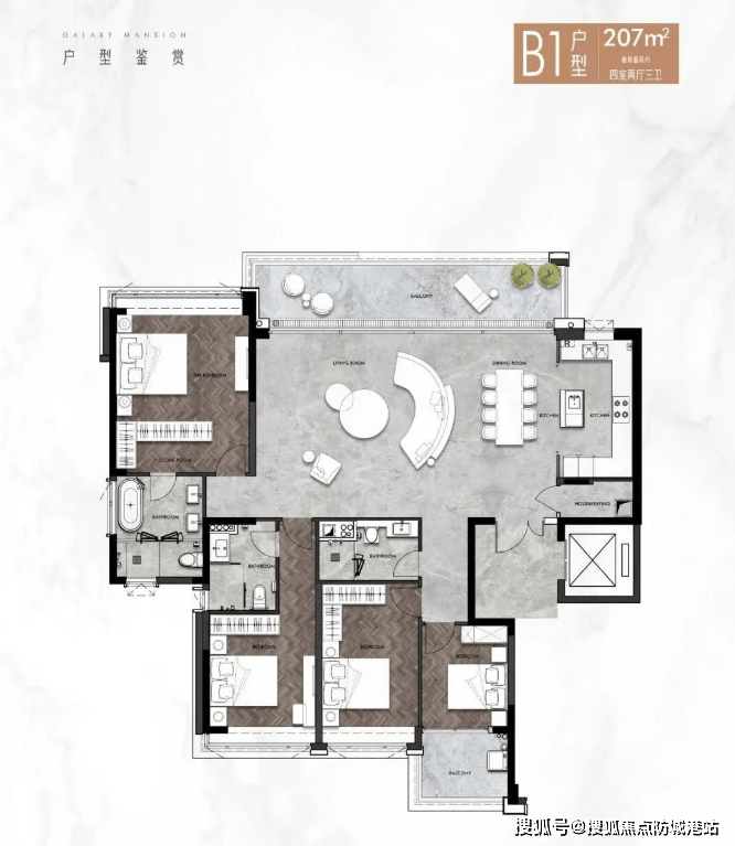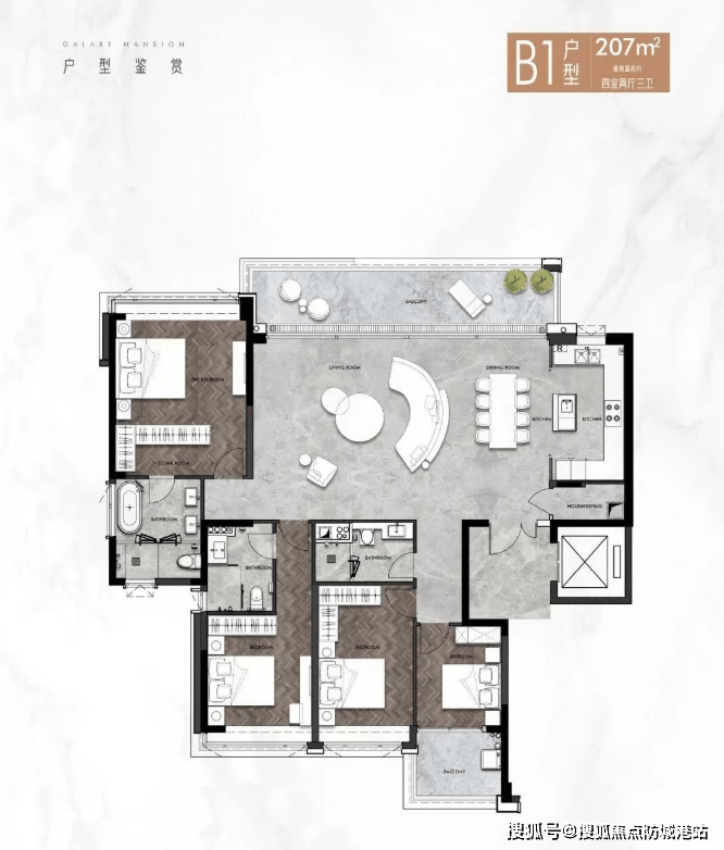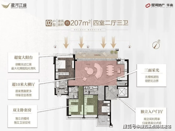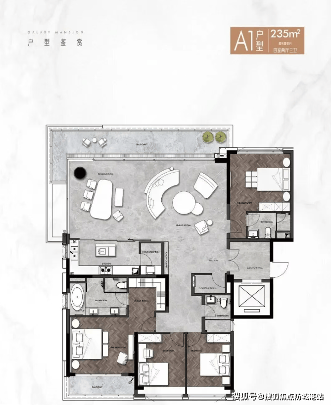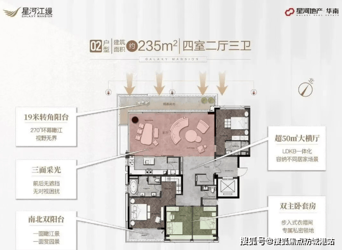 星河江缦提供179-235平方米的四至五房户型,包括: