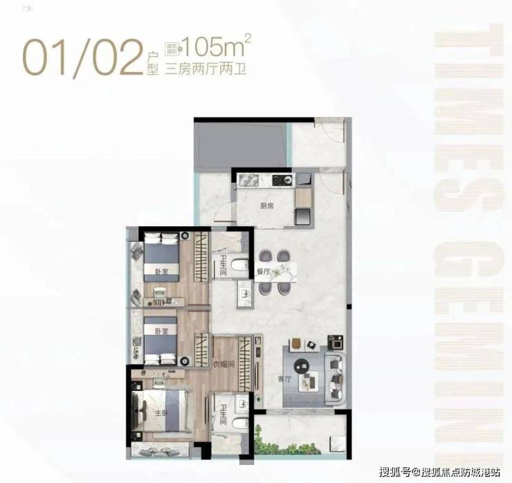 时代珑星共两栋楼,分别是G1栋和G2栋。从外形上看,G1栋算正常,蝶形设计,两梯六户,户型为99-106平三房;G2栋外观略显独特,G2栋推出的面积段为62-79㎡精奢小户住宅。
