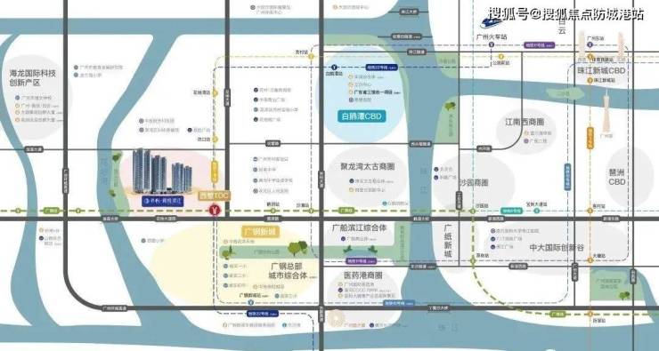 往大了说,处于白鹅湾商圈辐射区;往小了说,位于广钢新城板块西侧,周边是海龙科创起步区,坐落于西塱TOC辐射范围内。