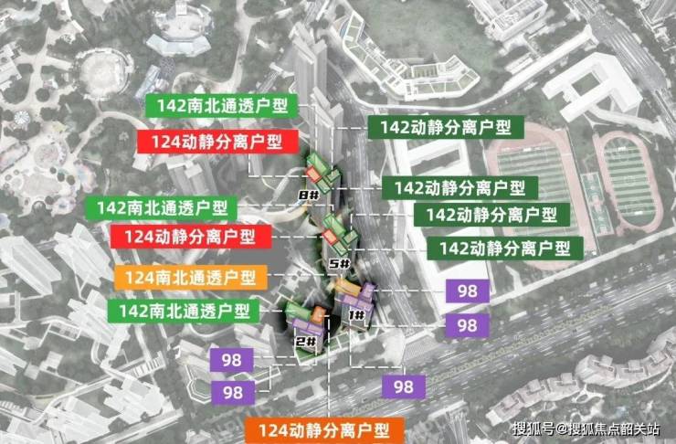 建面约95-140㎡三至四房,全南向设计,得房率超85%;