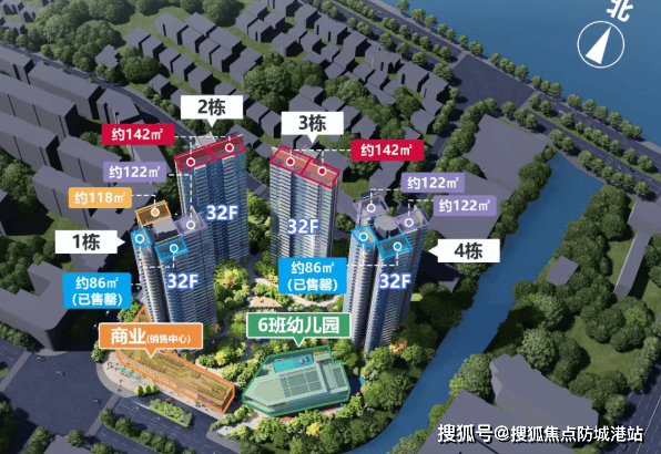 1#楼(2梯4户,32层):主力户型为建面约118㎡四房两卫(西北望江/270°江景视野)、122㎡四房两卫(南北对流),2026年12月交付;