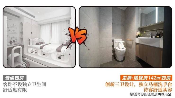 市面上常见四房基本都是单套房设计,但是龙狮·璟珑府考虑到了现代家庭的使用习惯,预留两个套房。
