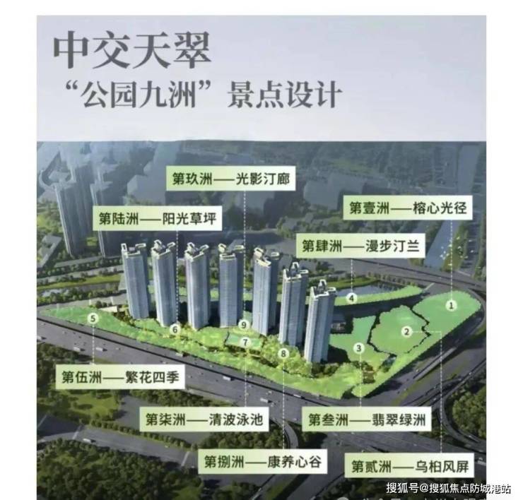 中交天翠位于广州的城市中轴线上,占据稀缺资源,位置优越。项目地块形状独特,像一把剪刀叉,虽然只有3万平方米可用于建设,但周围配备了1.7万平方米的道路用地和2万平方米的绿地,提供了广阔的公共空间。项目周边交通网络发达,距离地铁2号线和广佛线交汇的南洲站仅约500米,方便居民出行。