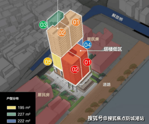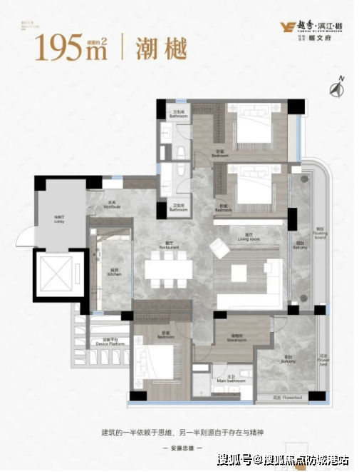 195㎡潮樾户型:三段式横向揽江格局,双景致阳台+大飘窗设计,三南向套房布局,适合年轻高净值家庭;