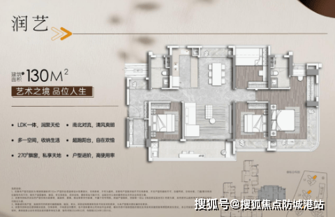 约130㎡ · 南北对流五房:全屋分布多条南北对流动线,静享清风流转;超62㎡LDKB大方厅,打造多功能家庭共享空间;主卧超长L型转角飘窗,兼顾功能性和舒适度。