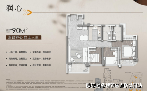 约90㎡ · 3房+1空间:四开间南向,集成工作、学习、休闲的多功能家庭聚场;预留定制飘窗收纳空间、独立卫浴。