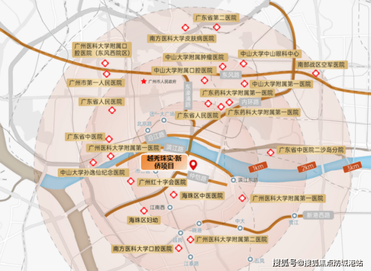 项目1公里范围内有万国奥特莱斯、万联购物中心、君汇天地等多个商业中心,满足日常购物需求。3公里范围内覆盖了滨江岭南文化商圈、江南西-太古仓商圈、中大时尚消费商圈以及广州塔-琶洲世界级商圈等四大海珠商圈,同时还有沿江路商圈、北京路 - 海珠广场商圈等四大越秀商圈。医疗方面,周边有广医一院、二院,珠江医院,海珠区妇幼等多家医疗机构,保障居民健康。