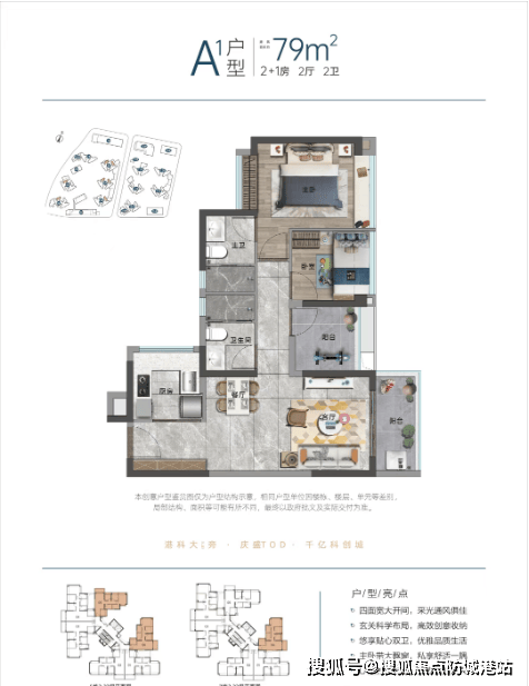 招商湾区1872目前主推面积段为79-105平方米的三至四房户型,使用率可达90%-94%,使得每平方米空间得到高效利用。其中,79平方米的户型虽然面积不大,但巧妙的设计使其具备了三房两卫的功能,非常适合刚需家庭选择。