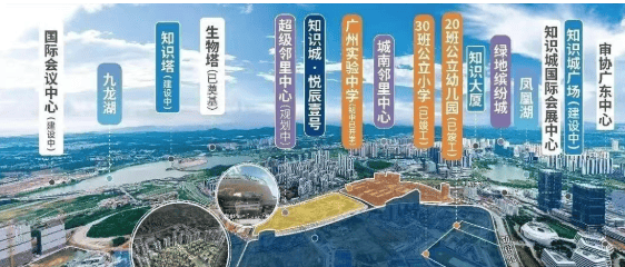 配套的学校及医院:项目自建20班幼儿园、30班小学(广州实验中学附属小学),对口广州实验中学初中部,形成“家门口”的12年公办教育链。周边还有华附知识城校区(在建)、广州新侨学校等优质教育资源。医疗方面,中山大学附属肿瘤医院黄埔院区、南方医院知识城分院正在建设中,能够满足居民的基本医疗需求。