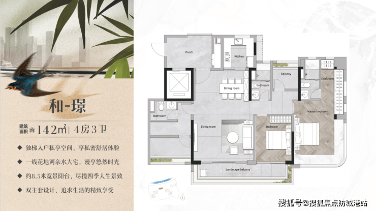 □ [142㎡四房两卫] 一线花地河景观,中轴王座