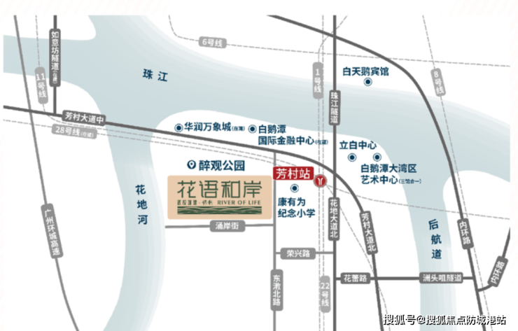 ıllı 主干道/高速/隧道:花地及芳村大道交汇,1km内有珠江/洲头咀/如意坊隧道(在建),接驳内环及环城