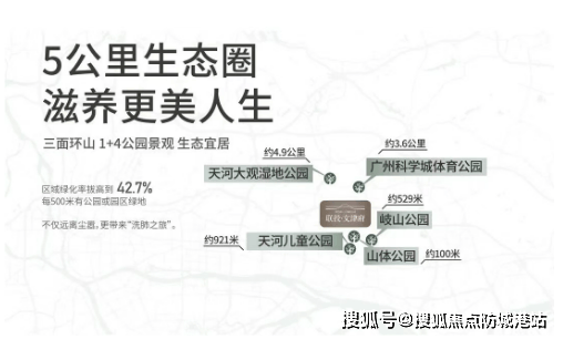 『联投文津府』坐拥“三面环山”的独特地理优势,人均公共绿地面积达13.4平方米。外揽“1+4公园”,包括山体公园、天河区儿童公园、岐山公园、天河大观湿地公园、广州科学城体育公园等,为居民提供了丰富的户外活动场所。项目规划“一轴两心三节点六境园韵”低密奢境,结合自然景观和人文历史,打造出一座生态与文化相融合的美好家园。