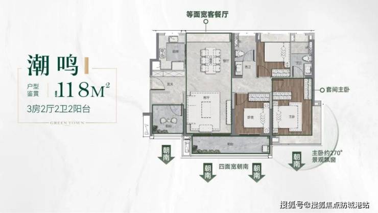 建面约118㎡三房两厅两卫,空间舒适,适合家庭