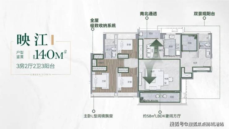 建面约140㎡三房两厅两卫,尺度阔绰,品质卓越