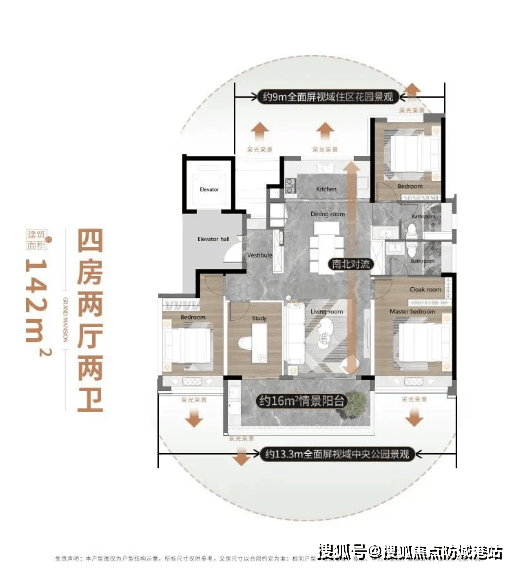 3. 142㎡四房两厅三卫(楼王专属)