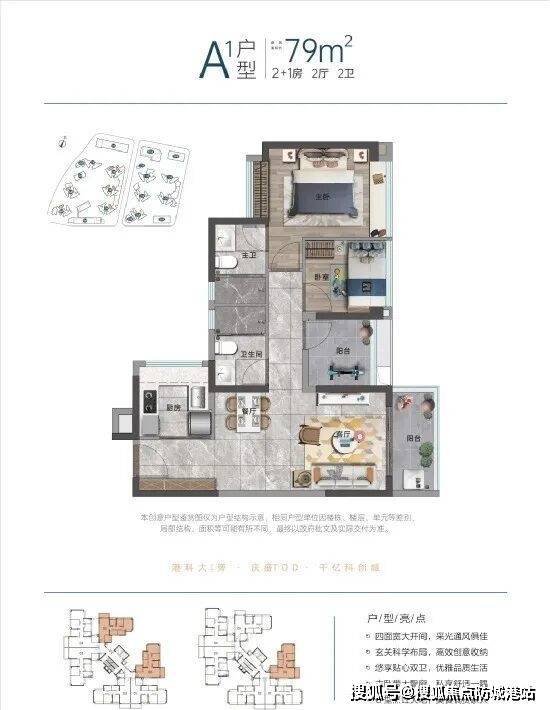 项目主推79-105㎡三至四房,满足从新婚家庭到三代同堂的多元需求。所有户型均采用南北通透设计,全明格局,得房率高达82%,远超市场平均水平。