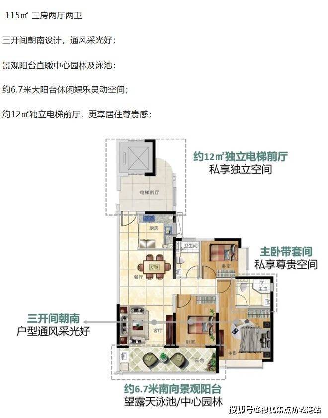 央景 7 座为实景现房,即买即交付入住,购房者无需漫长等待,可实地考察房屋质量与周边环境,真正实现所见即所得。独栋建筑,两梯四户,户户朝南,确保良好的采光通风。超 70 米宽楼间距,视野开阔,近可观中心园林,远可眺万亩湖山景观。115㎡三房两厅两卫户型,三开间朝南,通风采光优越,景观阳台直瞰中心园林及泳池,约 6.7 米大阳台提供休闲娱乐灵动空间,约 12㎡独立电梯前厅更显居住尊贵感。128㎡四房两厅两卫户型,四开间朝南,通风采光极佳,大横厅设计活动空间开阔,景观阳台可远眺万亩湖山自然景观,约 7.1 米景观阳台同样带来丰富生活体验,约 13㎡独立电梯前厅尽显尊贵。精妙的户型设计,满足不同家庭结构的居住需求。
