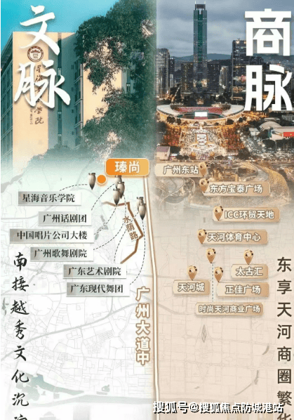 地理位置:项目地处越秀区与天河区交界处,紧邻天河商圈及珠江新城CBD,地理位置优越。周边文化氛围浓厚,是广州文化艺术的发源地之一。距离6号线沙河顶站B出口约500米,交通便捷,可快速通达全市各主要城区。