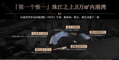 商业配套堪称顶级,项目自成地标,坐拥珠江唯一 8 万㎡内港湾,未来港湾将打造集休闲、娱乐、观光于一体的五大功能区,成为继万象城、三馆合一、双太古之后的第四大地标,为业主带来顶配生活体验。项目依托港湾形成独一无二城市天际线,借鉴新加坡设计理念,采用抬高式盖板创新设计,连接盖上住宅、架空园林、盖下滨水商业及亲水港湾步道,打造广州罕有滨水共融综合体,如同珠江新城的广粤天地一般,为业主营造出高端、舒适的商业休闲环境。