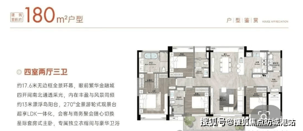 珠江天郦主推129㎡、140㎡、180㎡四房,全部采用LDK一体化布局,强调空间流动与家庭互动。其中140㎡户型堪称“爆款”:三面采光,南向阳台直通客厅,采光面长达18米,通风对流极佳;入户花园巧妙改造为家政区,洗衣机、清洁工具收纳有序,解放室内空间。180㎡四房更是奢阔——40㎡会客厅、7.4米宽景阳台、南向四开间、双主卧套房设计,满足多代同堂或高端改善需求。值得注意的是,项目使用率达85%-90%,远超市场平均水平,140㎡实得面积接近传统160㎡产品。层高3米,也优于普通住宅的2.9米,视觉更开阔。尽管南向低楼层受骏景花园遮挡,但26层以上即可俯瞰园林全景;北向虽临中山大道,但高区噪音影响可控。整体而言,户型设计兼顾实用性与舒适感,在高容积率下仍做出稀缺尺度。