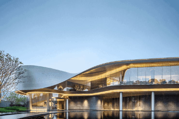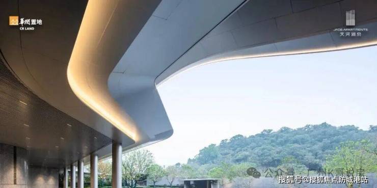 建筑立面风格现代简约,选用温润自然的材质与低饱和度色调,兼具端庄典雅与现代质感,大面玻璃的运用搭配流畅的水平线条,融入岭南广府文化元素,在细节处展现东方美学韵味,形成独具特色的城市建筑风貌。全新升级的润心底盘 2.0 体系,以润心桥、珠水门庭、院落大堂打造仪式感归家动线,让每一次回家都充满庭院式的诗意与尊崇感。