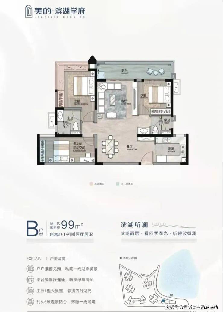 美的滨湖学府主打93-147㎡三至四房户型,使用率超94%,领先市面产品。其中,128-132㎡四房户型(建面约)是项目核心产品,具有以下特点: