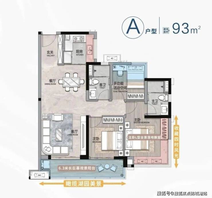 使用率超94%:全金沙洲最高,通过玄关预留冰箱位、主卧L型全景飘窗等设计提升空间利用率