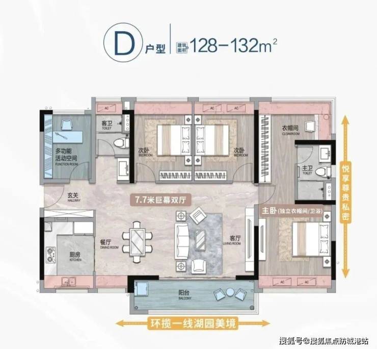7.7米大面宽双厅:南北对流双阳台,主卧30㎡套房含独立卫浴与衣帽间