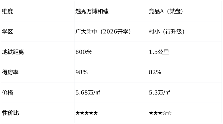 保值逻辑:万博CBD企业持续入驻,高净值人群租房需求旺盛;广大附中名校加持,陪读家庭租金承受力强。