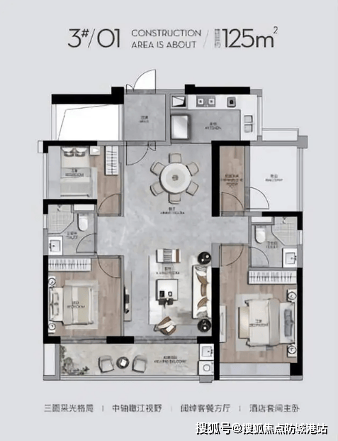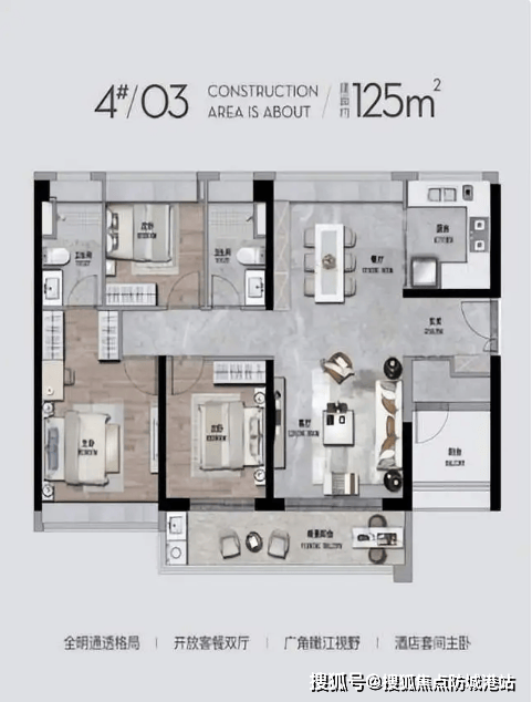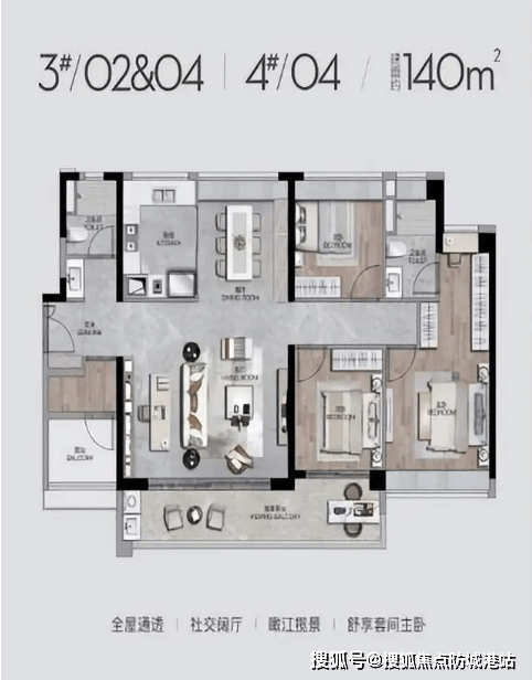 户型设计在满足实用性的基础上,注重景观体验和生活舒适度。无论是家庭日常生活,还是休闲社交活动,都能提供宽敞、明亮、灵活的空间。每户均可享受无遮挡江景和充足采光,真正实现“居住与自然景观的无缝衔接”。