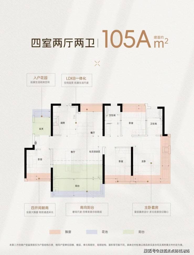 88㎡四房:7.3米全景阳台+餐厨一体化,270°转角主卧,尺度媲美市面100㎡户型。