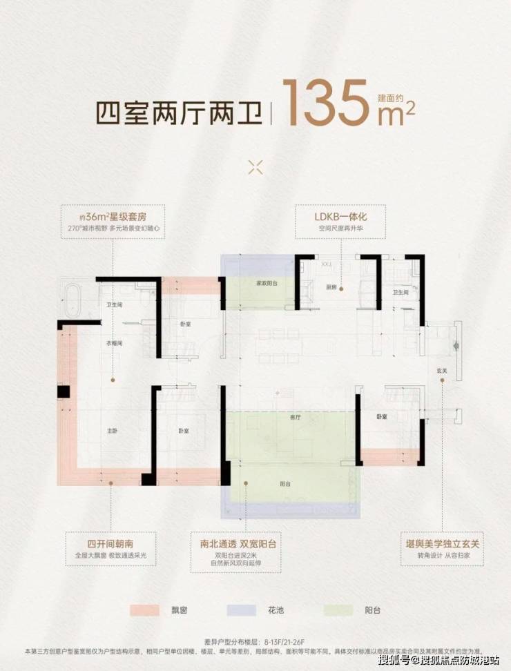 77-135㎡高拓户型:阳台占比突破20%,LDKB一体化设计,空间使用率达137%,77㎡三房两卫总价190万起!
